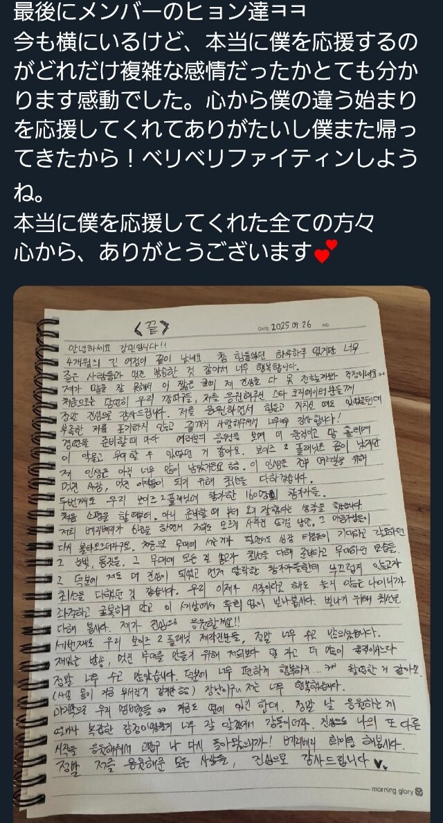 最後の最後までカンミンくんの物語を見せてくれて、ありがとう💖💖💖
