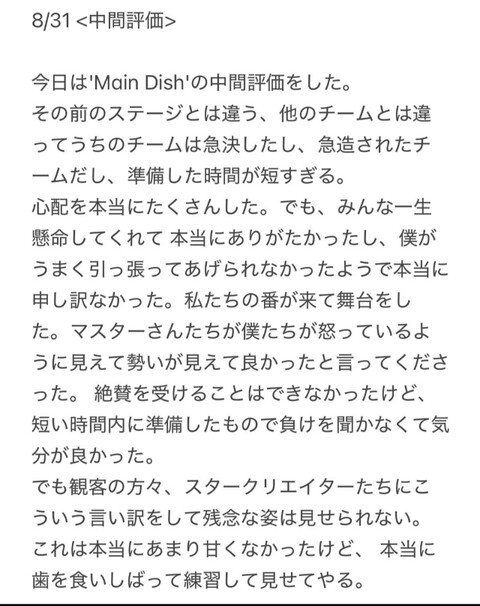 ベテランアイドルのカンミンくんから見た同年代のアイドルを目指す練習生達の、自分とはまた違った形の切実さは新鮮だっただろうな。