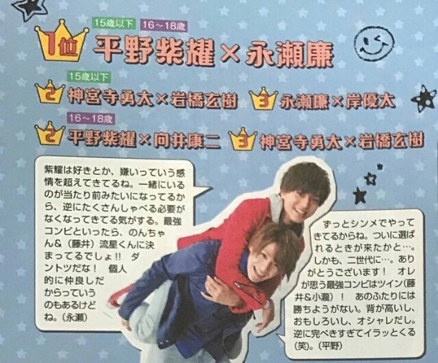 16~18歳の『恋人にしたいJr.1位』🎉🎉🎉