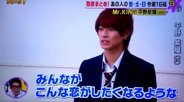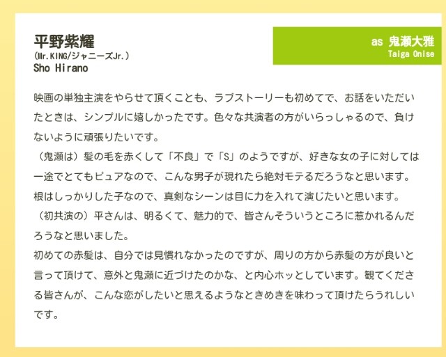『こんな恋がしたくなるようなときめきを味わっていただけたらうれしいです。』by平野紫耀